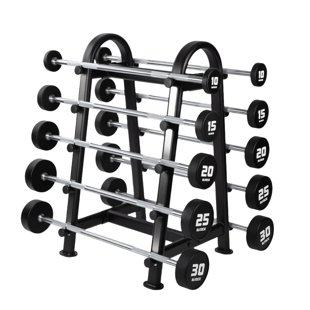 The BLK BOX Urethane Fixed Barbells are designed with comfort and design in mind while providing a piece of equipment that can perform a variety of workouts.